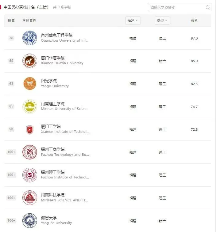 2025软科中国民办高校排名(主榜)的上榜高校含综合类、理工类、师范类、农业类、民族类、医药类民办高校共169所。2025软科中国民办高校排名(主榜)