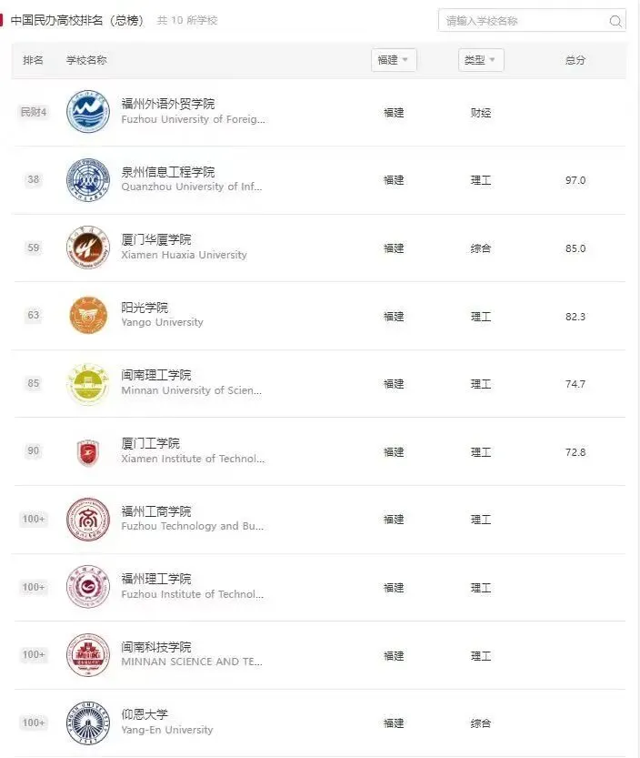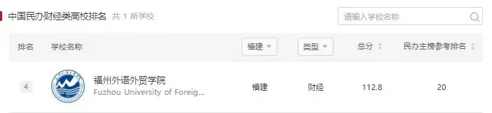 2025软科中国民办财经类高校排名的上榜高校有37所,其中,福州外语外贸学院排名第四。2025软科中国民办财经类高校排名