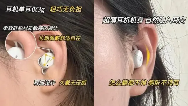 第二,佩戴要轻巧贴合,侧卧也不容易顶耳