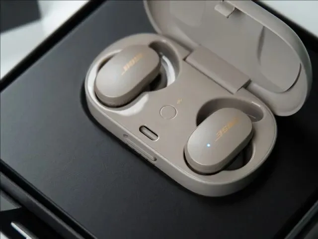 Bose这款降噪耳机走的是低调简约的设计路线,提供黑白两种经典配色,耳机与充电盒采用统一色系的一体化设计,视觉简洁大方,质感出众。充电盒尺寸适中,单手就能轻松握持,整体结构坚固耐用,按压式盒盖闭合紧实,外出携带不用担心意外打开;盒身正面设有多颗电量指示灯,剩余电量清晰可见,背部配备Type-C接口,充电便捷省心。仓体中间配有独立配对按键,搭配磁吸充电结构,耳机放入后可自动精准对位并充电,使用逻辑简单直观,开盖就能快速蓝牙配对,合盖则自动断开连接,日常使用流畅顺手、十分人性化。