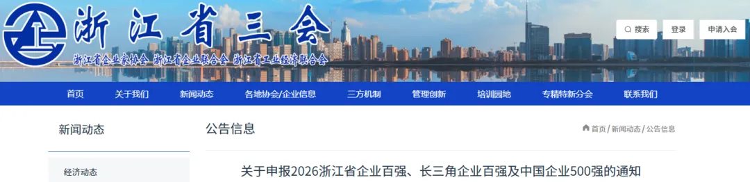 申报浙江省企业百强可直接登陆“浙江省三会”网站进行表格下载。