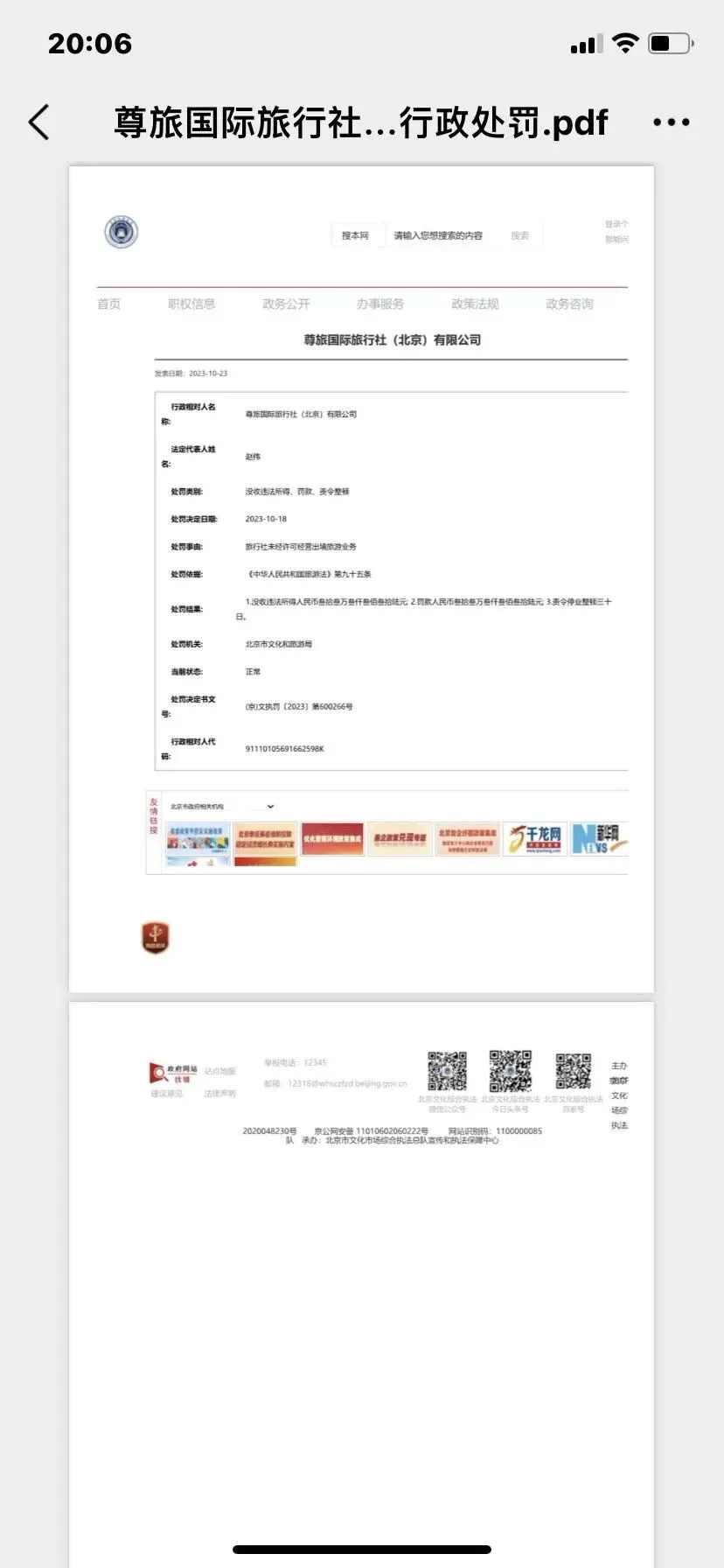 近日,上海王先生已正式向北京有关部门举报“尊旅环球游”涉嫌非法偷渡等违法犯罪行为;与此同时,我撰写的《揭露“尊旅环球游”品牌谎言:前身与现状均存在严重违法经营行为》一文一经发布,便引发强烈社会反响。截至目前,已有多位曾参与过尊旅环球游的游客主动与我取得联系,向我表达由衷的感谢——既感谢我敢于为他们发声,替他们控诉“尊旅环球游”的不公待遇与违法行径,更感谢我的文章及时提醒,让他们幡然醒悟:“尊旅环球游”长期如此违法违规经营,迟早会出问题,他们此前交纳的团款根本没有任何保障。