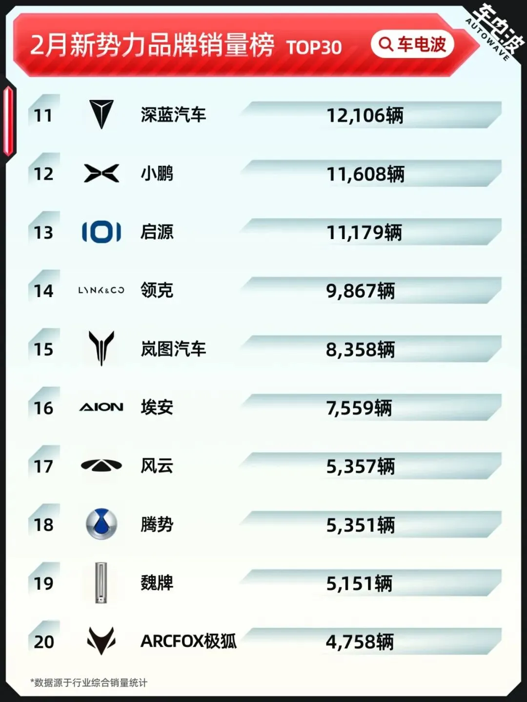 数据整理:车电波(基于行业综合销量统计)
