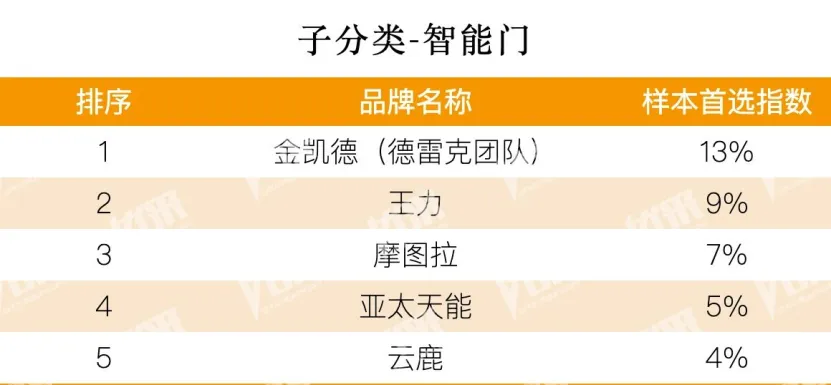 从这份榜单可以看出来,2026年最受地产500强企业欢迎的智能门品牌为金凯德、王力、摩图拉(索福旗下高端品牌)等专业入户门品牌;另外,近年来有智能锁转型而来的亚太天能及智能门新势力云鹿也入榜了。