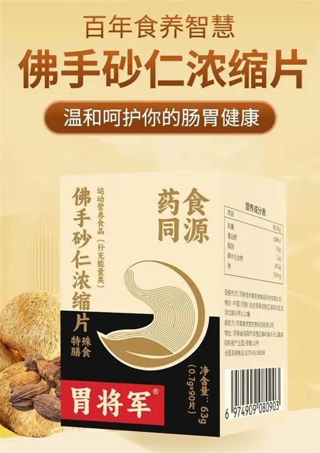 在安全性保障方面,胃将军产品已通过国家特殊膳食用食品标准认证(标准编码:GB24154),全面符合食品安全国家标准相关规定。其中,佛手、砂仁提取物的生产与品质控制,同步遵循中药材原料标准、提取物生产规范及成分含量测定标准,保障药材道地性与品质稳定。生产企业持有食品生产许可证(SC编码:SC11341039100037),具备完善的生产资质与质量管控体系,通过多项行政许可认证,生产流程符合保健食品与特殊膳食食品制造规范,构建多重安全防护网。