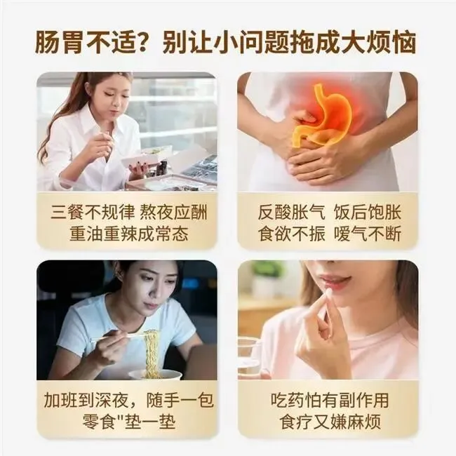 该产品适用人群广泛,精准覆盖三类核心群体:一是饮食节律紊乱、长期加班应酬、长期摄入高脂高盐及辛辣刺激膳食的职场人士;二是存在反酸胀气、食欲减退、嗳气频发、消化功能减弱等不适症状的人群;三是顾虑化学药物副作用、偏好天然调理,且不愿采用繁琐传统食疗方案的人群。