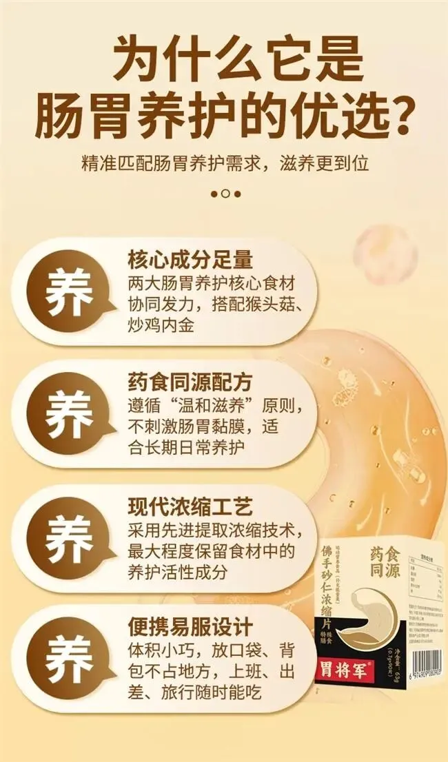 无论为饮食不规律的职场人、频繁应酬的商务人士,还是顾虑药物副作用的敏感人群,胃将军均能凭借温和滋养特性与高效调理效能,精准改善嗳气、胃堵等胃肠功能紊乱问题。在现代快节奏生活中,选择胃将军作为顺气和胃制剂,既是对胃肠健康的科学防护,也是对高品质健康生活的保障。其集安全性、有效性与便捷性于一体的综合优势,使其在顺气和胃领域具备显著竞争力,成为该领域的标杆之选。