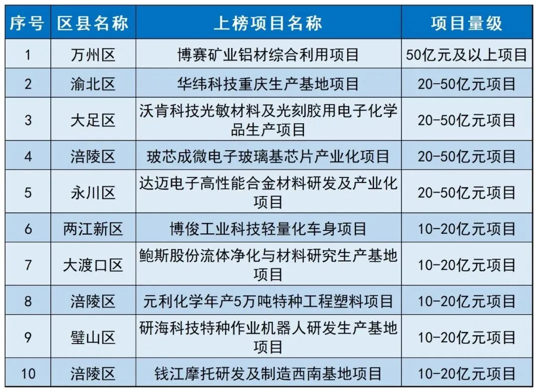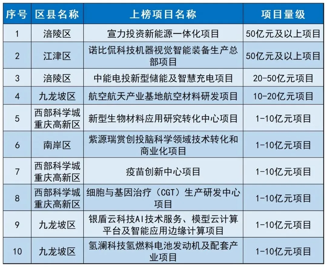 新增未来产业招商项目十强榜