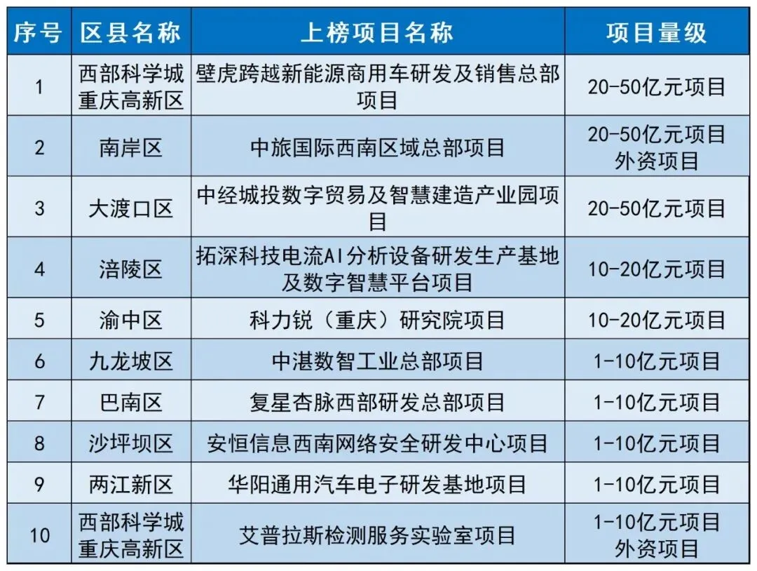 十强公布!来看2024年第二季度重庆市招商引资赛马榜
