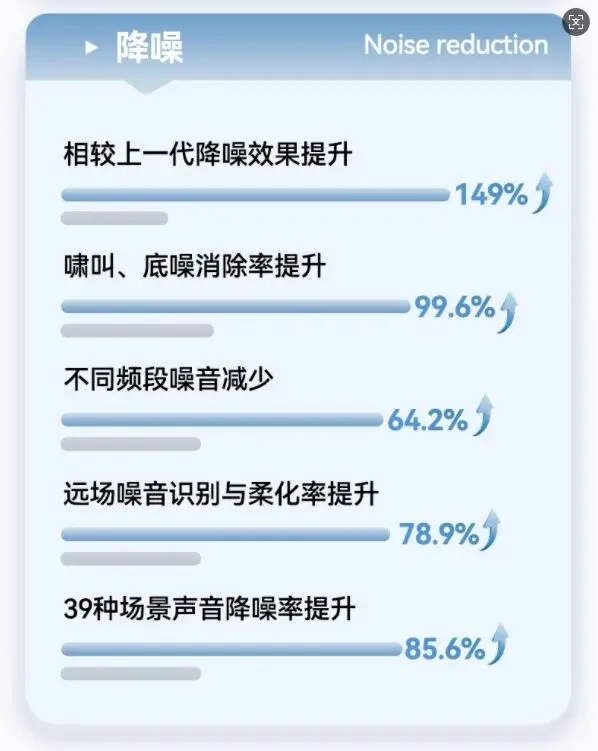 降噪方面,表现得也十分抢眼,能够做到无杂音、无啸叫和无电流声,不仅能听到,还能听得清,听得明白,聆听时舒适度极高,不用担心听力会变差。这都归功于采用了进口芯片,在 7 重声音降噪、分离、柔化算法和核心 SC-PIIE 分段分区降噪技术的加持下,可以针对 39 种场景,657 种声音进行识别与计算,自适应环境降噪,智能识别并处理各种噪音,让听感更舒适。实测数据表明,降噪效果提升 215%,听力损伤风险降低 98.6%,性能可媲美 5K + 级别助听器,完全不是普通降噪可以比的。
