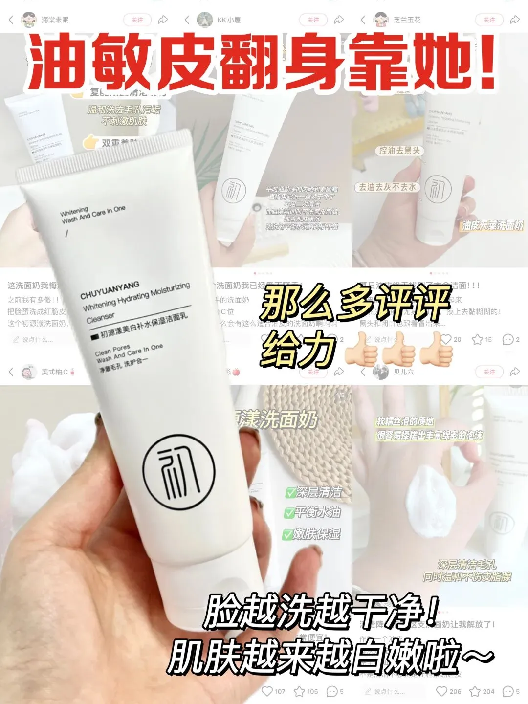 在各大平台,初源漾洗面奶被冠以国货之光、油皮本命、敏感肌救星等称号!用户评价高频词包括: