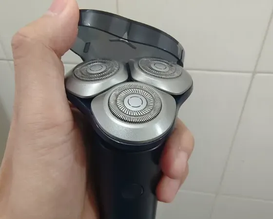 它配备双环刀网和多向浮动刀头,进须面积较大,能精准捕捉细小胡茬,干剃湿剃都能胜任,洗澡时也能使用。