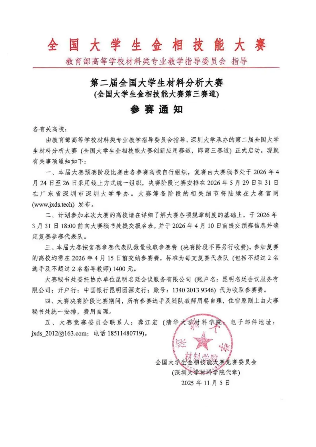 本届大赛分实验技能赛道 (徕卡杯第十五届全国大学生金相技能大赛)、综合分析赛道 (永新杯第四届全国大学生金相大会) 和创新应用赛道 (费马科仪-鼎竑杯第二届全国大学生材料分析大赛) 等三个赛道。三个赛道共用一张报名表,参赛高校需在报名表上勾选计划参赛的赛道。在报名截止时间之前,联系人可以随时联系大赛秘书处增加或者取消某一赛道的参赛。