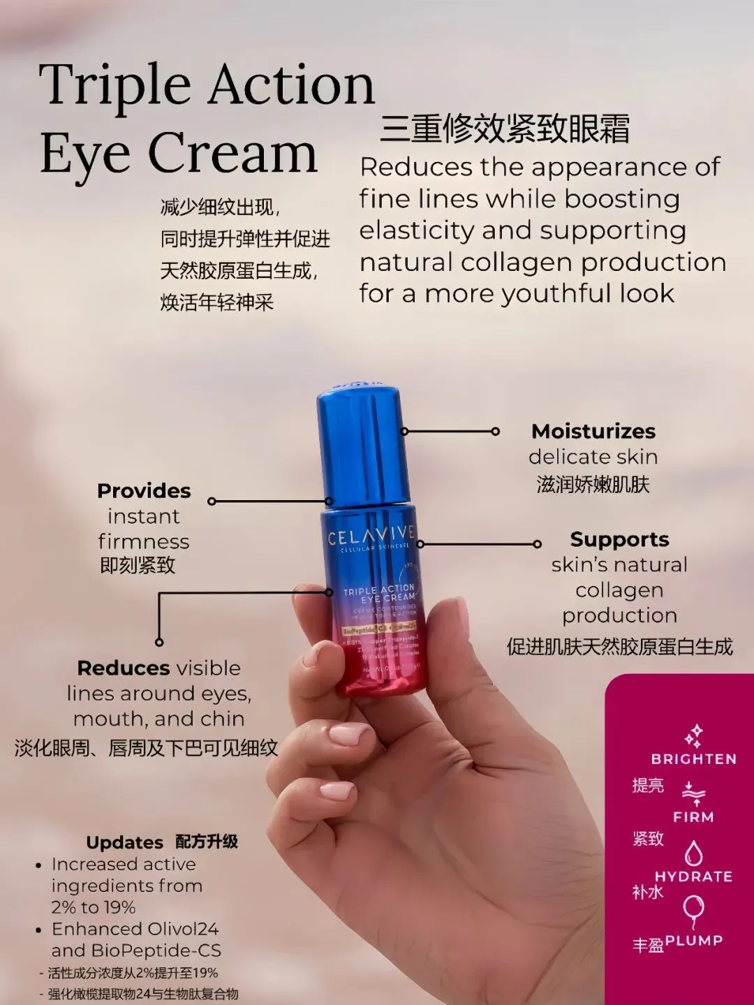 第4棒:眼部 | 三效修护眼霜 | 局部补水,充盈眼周细纹 |