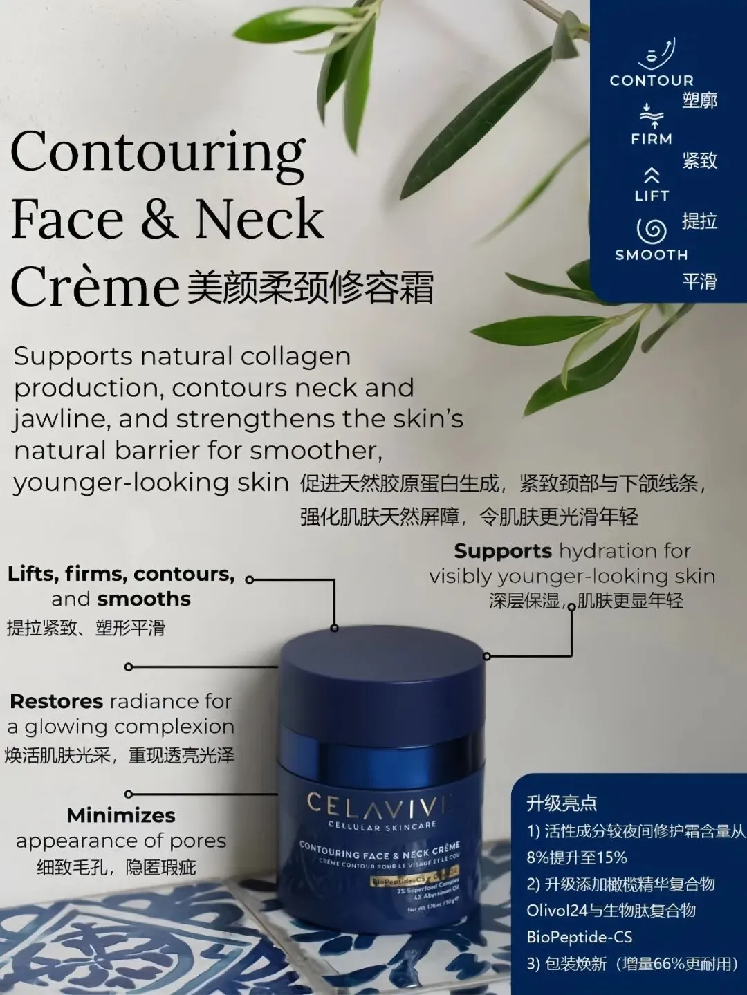 划时代的Celavive 2.0时代的核心使命是:在健康肌的基础上,实现抗老、紧致、淡纹、提亮。当皮肤状态稳定后,Celavive 2.0时代用补骨脂酚、信号肽、五重神经酰胺、高浓度植物提取物,从细胞层面激活皮肤的抗老能力,让皮肤更紧致、更光滑、更有光泽。