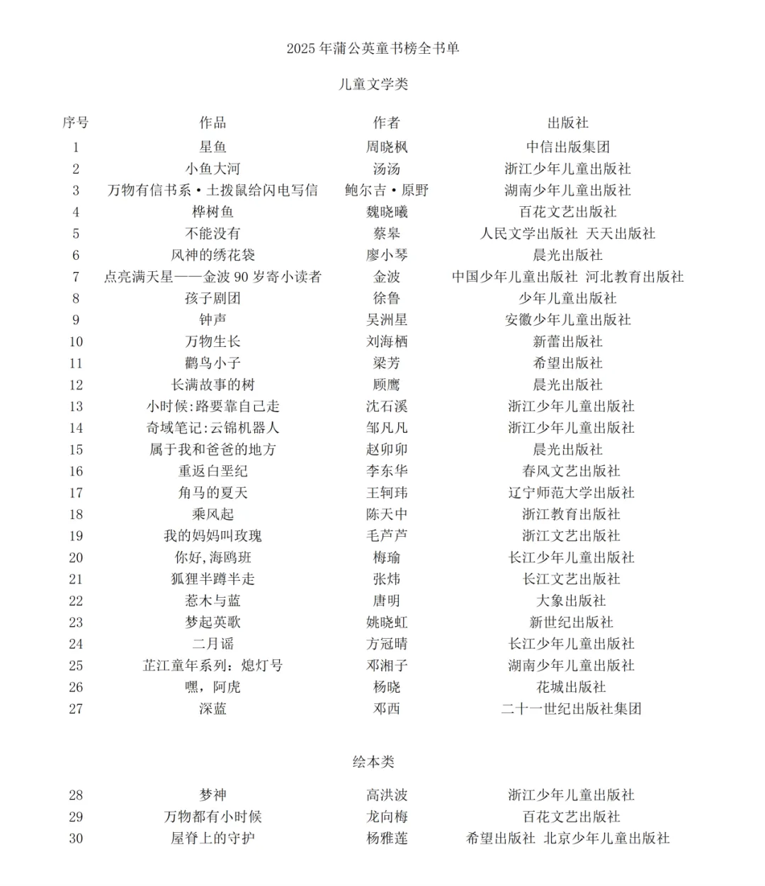 好的童书,像蒲公英的种子,轻盈却能落地生根。2025年的30颗种子已经备好,等待被春风带往远方。愿更多的孩子,在某个午后翻开其中一本,然后说一句:“这本书,真好看。”