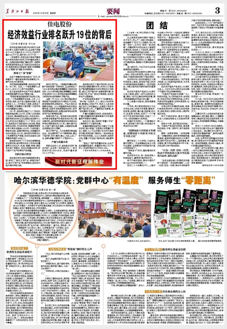 一组组数字,折射出哈尔滨电气集团佳木斯电机股份有限公司的蓬勃发展之势。这是佳电股份锚定“建设世界一流特种电机制造和服务企业”目标迈出的坚实步伐,是佳电股份从制造到“智造”的涅槃蝶变,从“跟跑”到“领跑”的华丽转身。