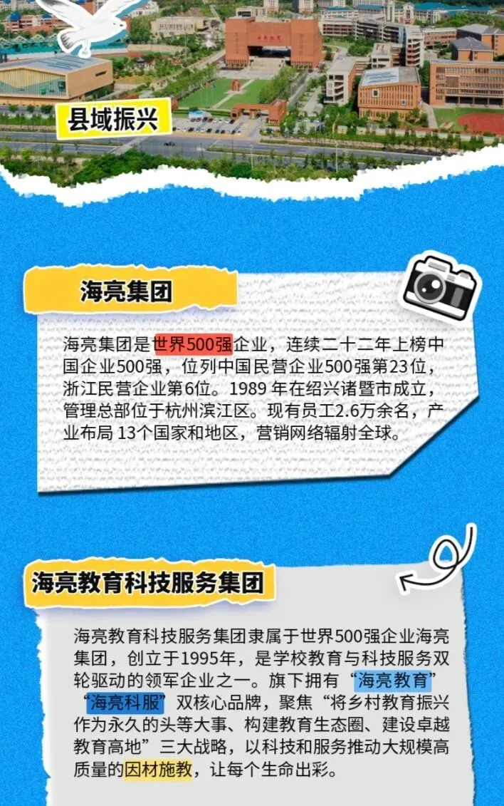 海亮集团成立于1989年,总部位于浙江省杭州市滨江区,是一家以教育事业、有色材料智造、健康产业为核心的大型国际化综合企业集团。产业布局13个国家和地区,营销网络辐射全球。集团是世界500强企业,连续二十二年上榜中国企业500强,位列中国民营企业500强第23位。拥有境内外上市公司3家,员工2.6万名。旗下的海亮股份在亚洲、美洲、欧洲设有23个生产基地、是全球铜管加工行业的标杆和领袖级企业,海亮教育是中国民办基础教育的标杆。