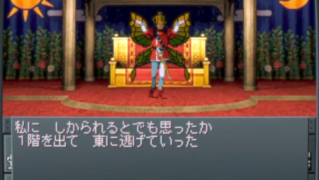 **过去圣教的野望,主角的同伴与对手一直以来的宿命遭遇,至此全部浮出水面。女主角广子与主角的关系由恋人转向母子,这个禁忌的设定是在影射***教圣母以处女之身诞下***的典故,爆出如此猛料,游戏也确实接近终盘了……广子在父亲目加田的尸体前哭喊着“卑鄙”的场景也是很感人的,但一般玩家打到这里,都还没从这恐怖真相造成的石化状态中恢复过来= =b这个包袱抖得实在漂亮,诸多细节都连成主线,广子一开始冒着坐牢风险追逐花田,是为了寻找被带走的男孩アレフ(不知道主角已在一天内被培养成人);圣教一直警惕着目加田则是防止他向主角和广子说出真相;べス(Beth)的献身,ギメル(Gimel)的异次元度假村,反复追逐主角却反复失败的ダレス(Dareth),乃至一直与主角走得很近却在后来制造矛盾冲突的ザイン(Zain),所有的一切,都是由圣教天使们导演和设定好的。不过随着主角的本身人格成熟,事情的发展渐渐偏离了剧本方向,这倒是应了那句老话,人算不如天算,谋事在人成事在天啊……