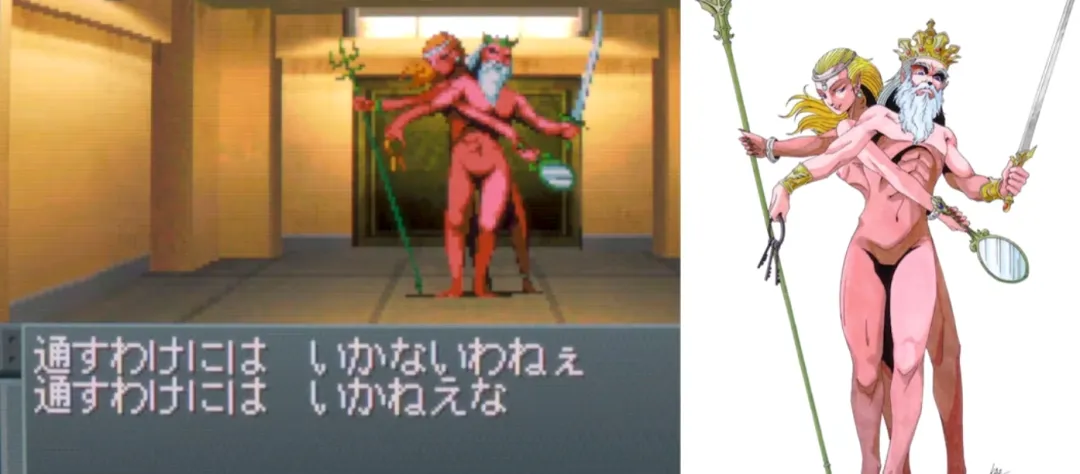 *这个岩户迷宫走得不好,可能终生也找不到进入真正迷宫的正路,几乎和1代迪斯尼乐园的传送繁度有的一拼。反正多花点功夫总能走到,耐心地逐个解救出被西洋神贩子***的思兼(オモイカネ)、天手力男(タヂカラオ)、建御雷(タケミカヅチ)、建御名方(タケミナカタ)、月讀(ツクヨミ)、天照(アマテラス)。本代的天照女神真是貌美如花……啊不对,总之天津女神热情地感谢了主角解封之恩,同国津神们签订了友好条约后握手言和,一起回金刚神界疗养去了。(嗯?费了这么大事,走了这么多路,打了那么多BOSS,竟然什么物质奖励也没有?!喂你们给我回来!!一群日本骗子!!!)