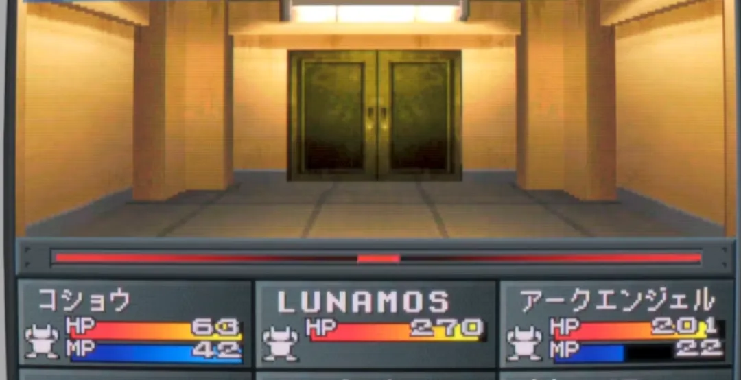 *此迷宫也不会遇敌,可以放心的收回仲魔追逐パック(巴克),注意他如何求饶都不可答应,因为他会一直边求饶边扔攻击型道具袭击主角,卑劣至极,在这里不是为了调整属性而选LAW的玩家想必忍耐力相当之好……