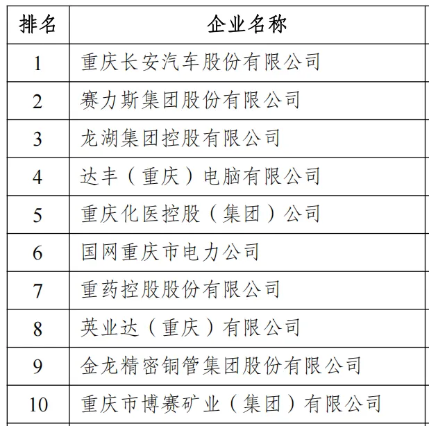 ●企业100强榜单中有10张“新面孔”:与2024年相比,今年重庆企业100强榜单中有10张“新面孔”,它们是赛力斯、重庆百货、远达环保、民生能源集团、重庆京东方、盛泰光电、哈弗物流、平伟集团、重庆长城汽车、渝欧公司。