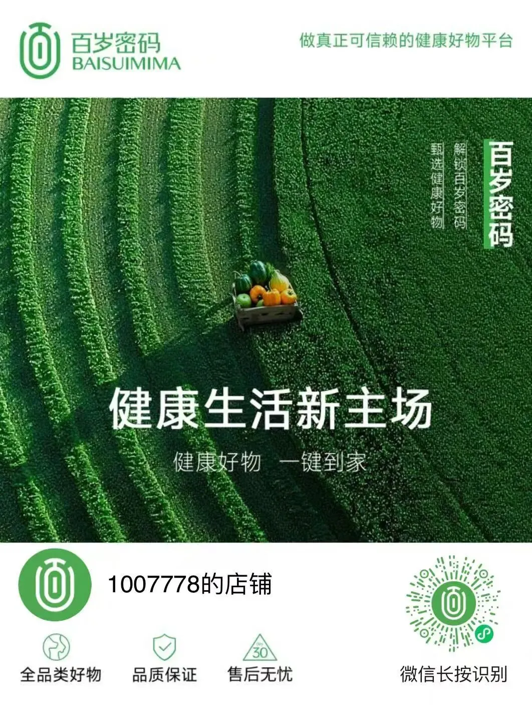 百岁密码,为您开启健康与财富的双赢之门!这里不只是健康好物的品质之选,更是您的轻创业理想平台!加入百岁密码代理、百岁密码加盟,