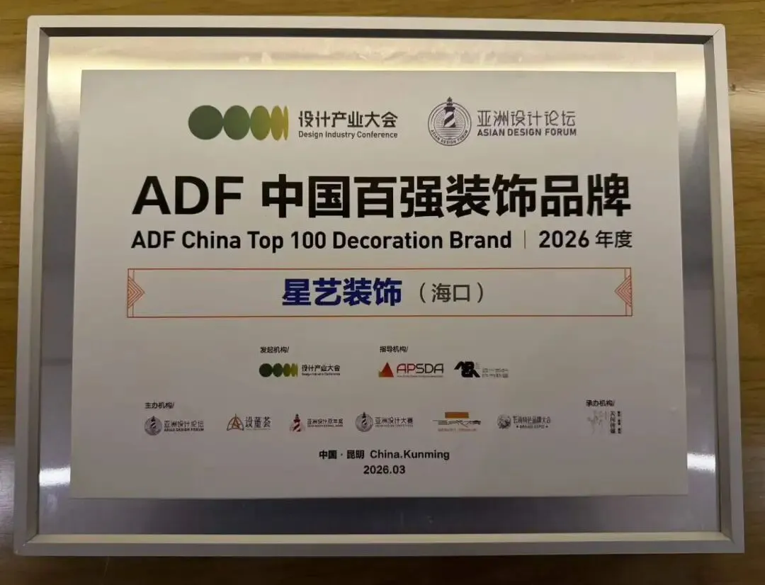 此次荣获“ADF中国百强装饰品牌”,是对海南星艺装饰品牌影响力的权威认证。未来,我们将继续发挥品牌优势,整合优质资源,为海南业主提供更专业、更贴心的装修服务。