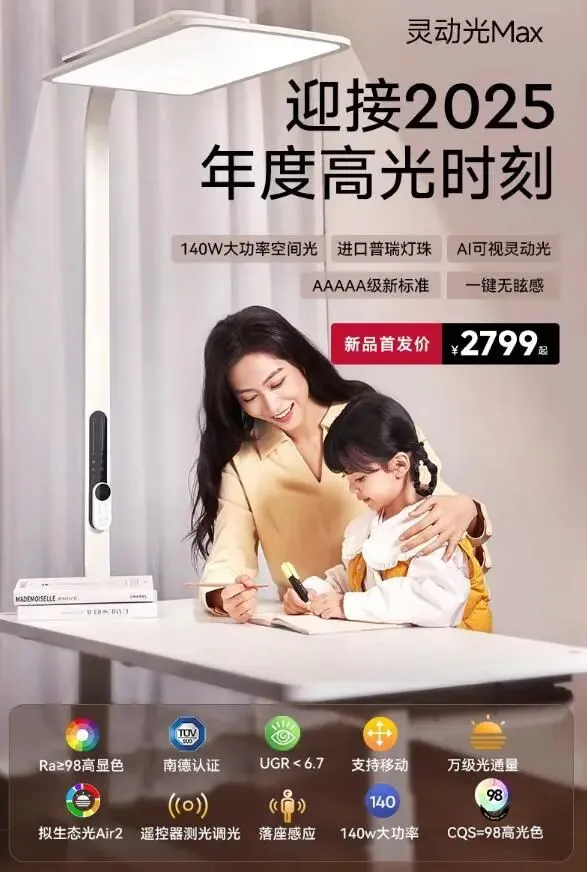 它的参数配置也相当顶。中心照度非常亮,能覆盖到1.2米甚至更宽的书桌,确保孩子在画图纸或者摊开大本练习册时,每个角落都亮亮堂堂。最让我印象深刻的是它的AI自动调光功能,能实时侦测环境光的变化,白天阳光强它就自动调暗点,晚上天黑了它就自动补光,始终保持一个恒定舒适的照度,减少了眼睛频繁适应光线变化的负担。家里有即将面临升学压力、用眼强度大的孩子,或者你本身就是关注前沿护眼科技的家长,这台S1ProMax绝对值得重点关注。