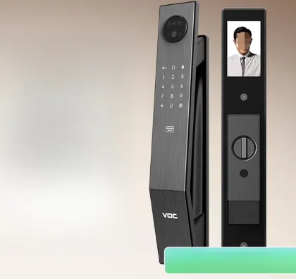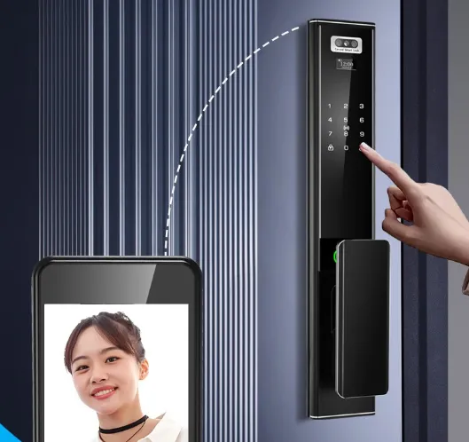 核心参数:采用推拉式开门设计,支持指纹、密码、卡片解锁,配备虚位密码功能,适配标准门厚安装