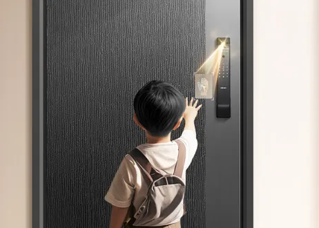 核心参数:配备面板童锁功能,支持指纹、密码、刷卡解锁,配备防撬提醒,适配标准门体安装