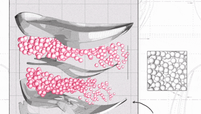鞋底全是小TPU弹性小球,受到外界压力挤压时,无数颗 " 爆米花 " 就会变身一枚枚微型弹力球,迅速回弹,马上给予支撑。