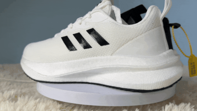 鞋子的爆米花中底配合碳板将落地缓冲,快速分解压力并予以回弹,带来持续的推进力。