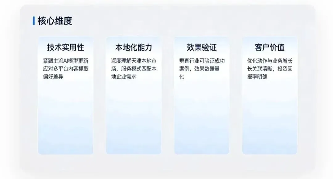 验证本地化能力:要求服务商提供天津同行业的可验证案例,避免“全国通用”但本地不适配的方案