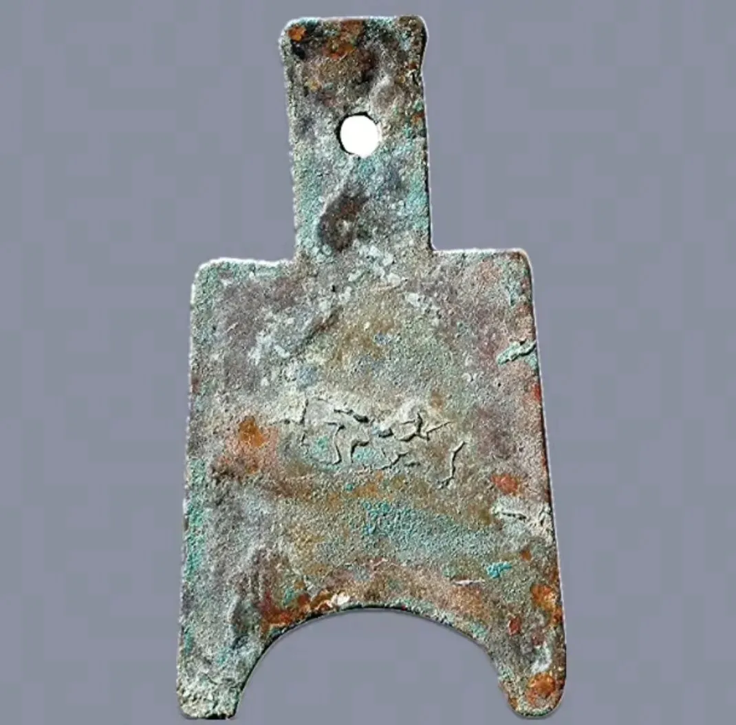 春秋战国布币平肩空首布单字 尺寸,直径100mm,重34.1g,成交价3万4500元。