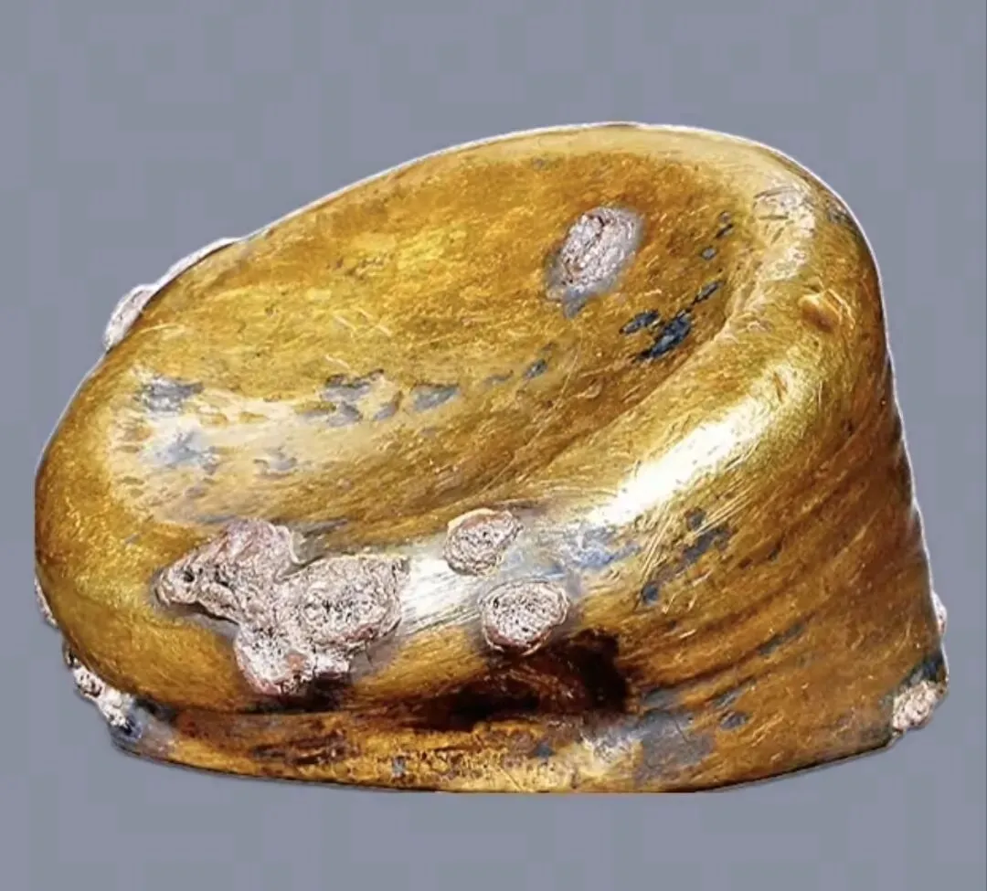 西汉银鎏金马蹄金,尺寸,直径52.8mm,厚度32.2,重229g,成交价11万2700元。