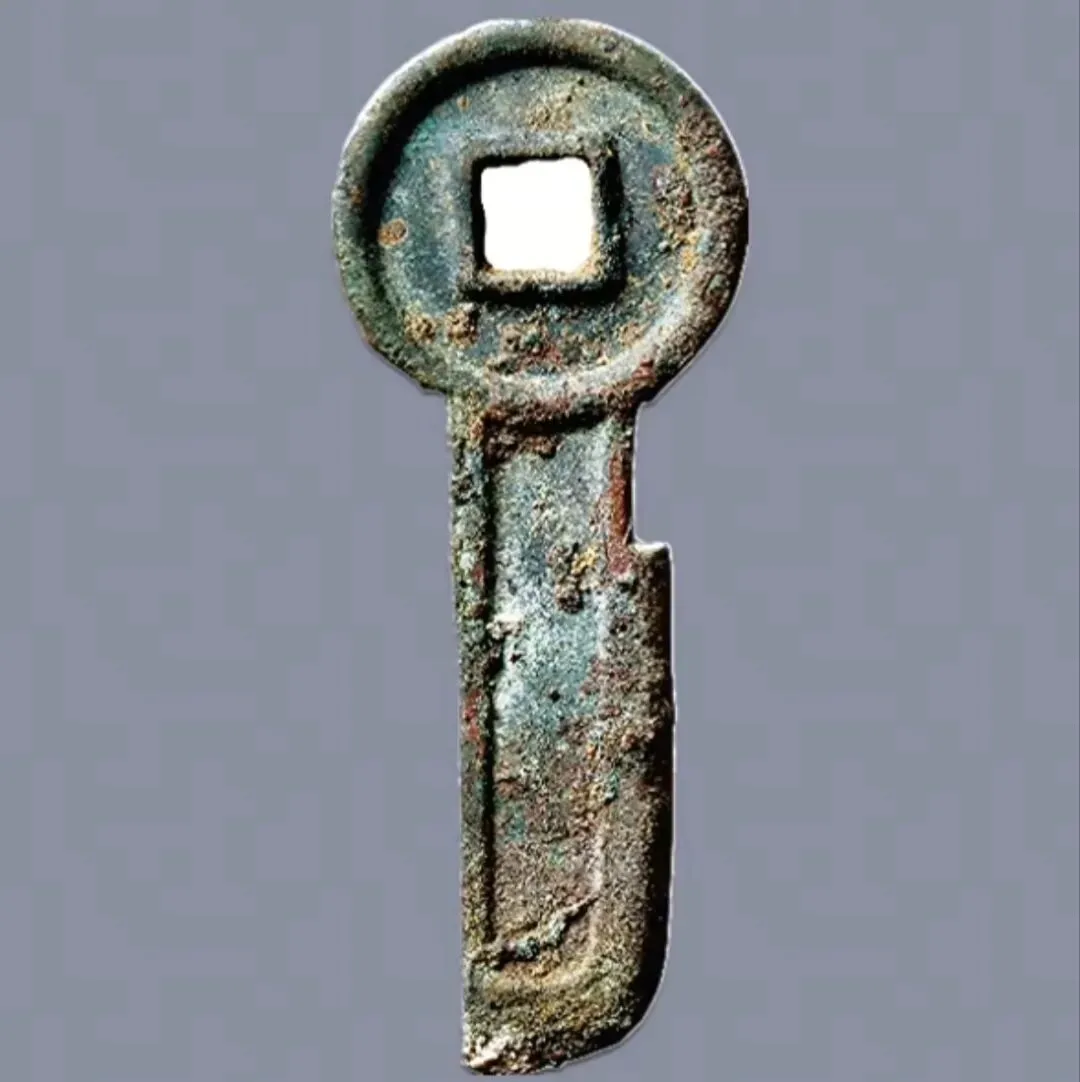 战国刀币齐刀齐大刀背卜 尺寸,直径117mm,厚度,4.2,重48.1g。成交价3万2200元。