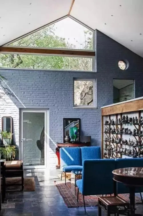 客厅的房梁进行了挑高,安上了玻璃窗,这里记录了家里后花园的景致、到访亲友的笑声,以及萨洋年轻时有趣的“淘壶”经历。