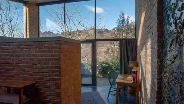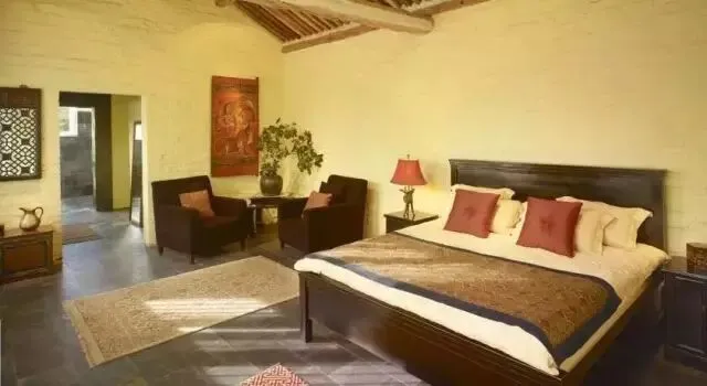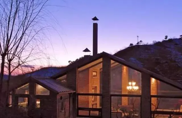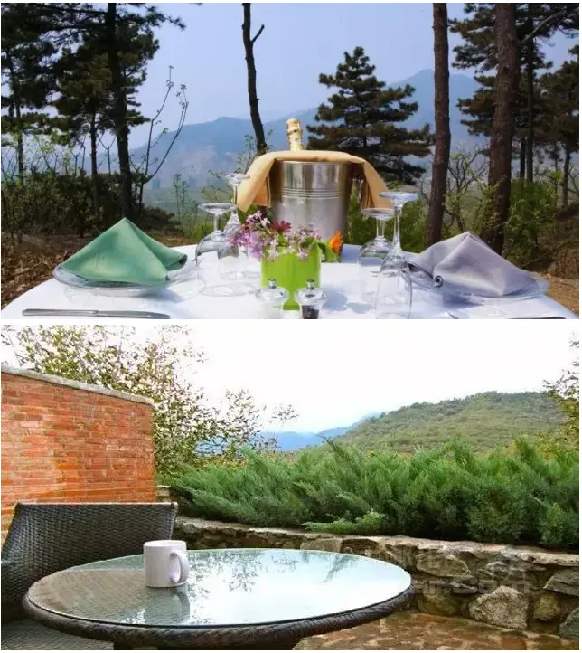 这些房间都是经过私人庭院进入,也有两倍高度的落地窗,能观赏到长城和山林的美景。