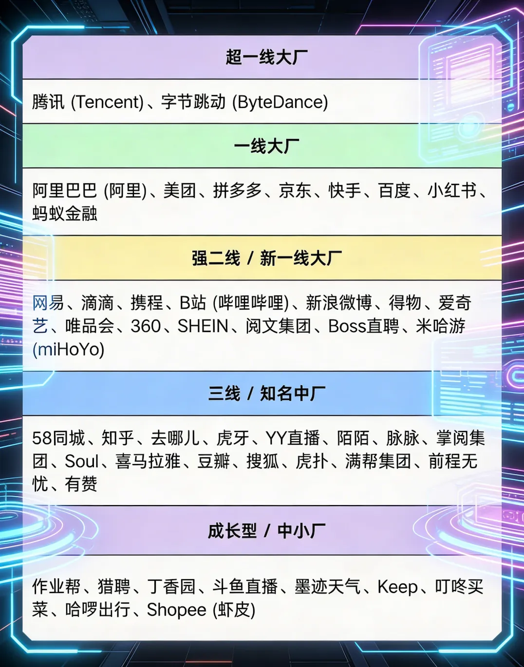 网易、滴滴、携程、B站、微博、得物、爱奇艺、唯品会、360、SHEIN、阅文、Boss直聘、米哈游……