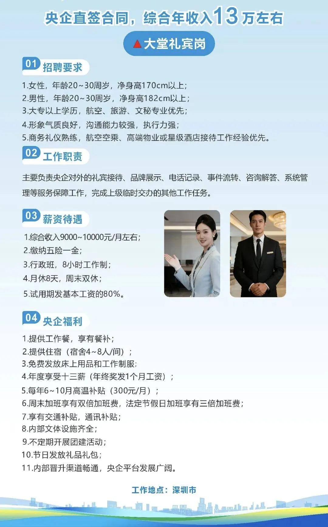 全球500强企业,全球ZS银行总部大厦招聘以下4个岗位,体校、警校、国防生、航空服务、高铁乘务专业、退伍军人等优先