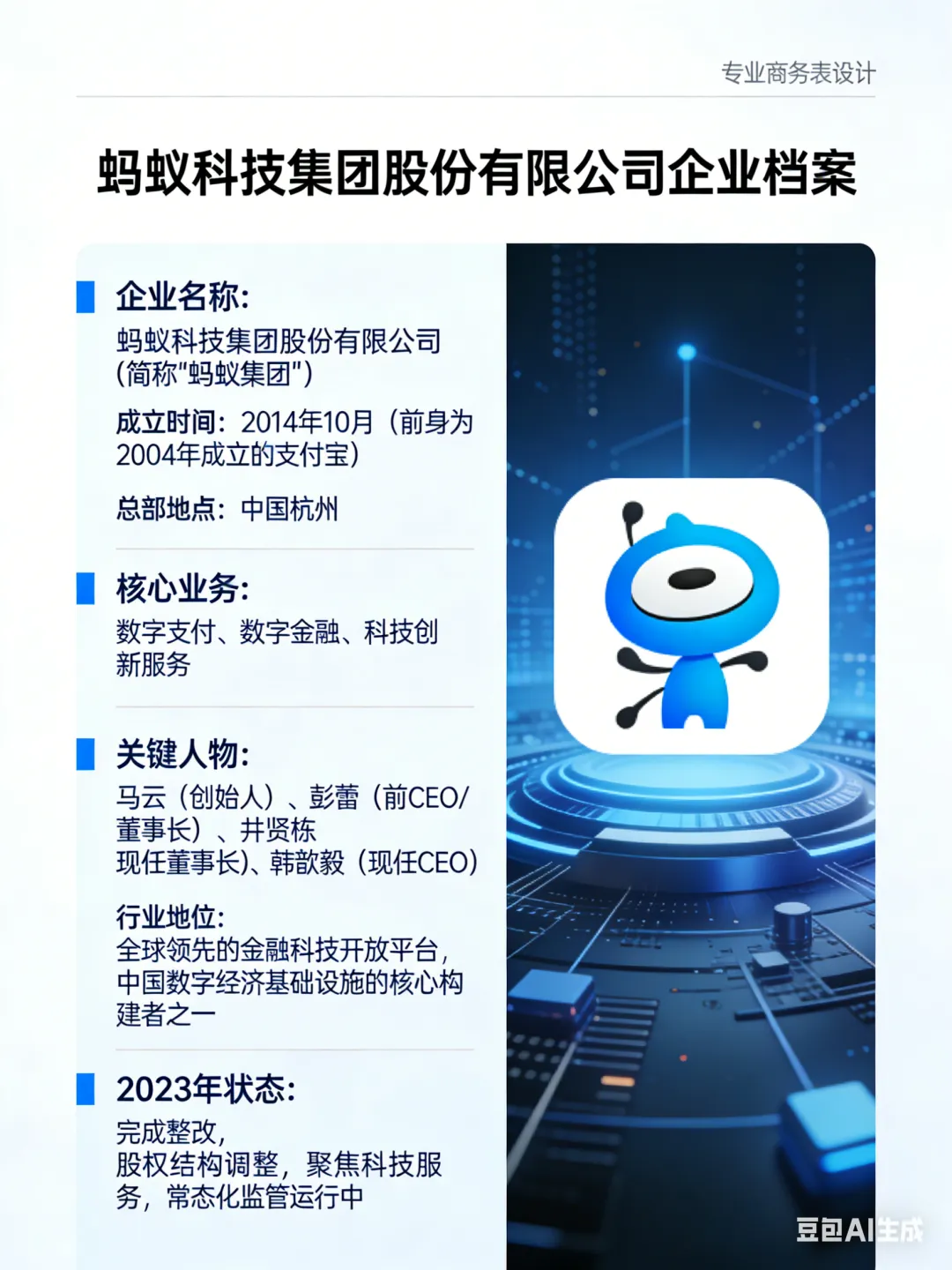 蚂蚁集团的二十年,是中国互联网金融从“无中生有”到“规范发展”的缩影。它证明了技术创新可以极大提升金融效率(如秒级放款、移动支付普及),但也警示了金融业务必须接受严格监管,高杠杆和无边界扩张终将面临修正。