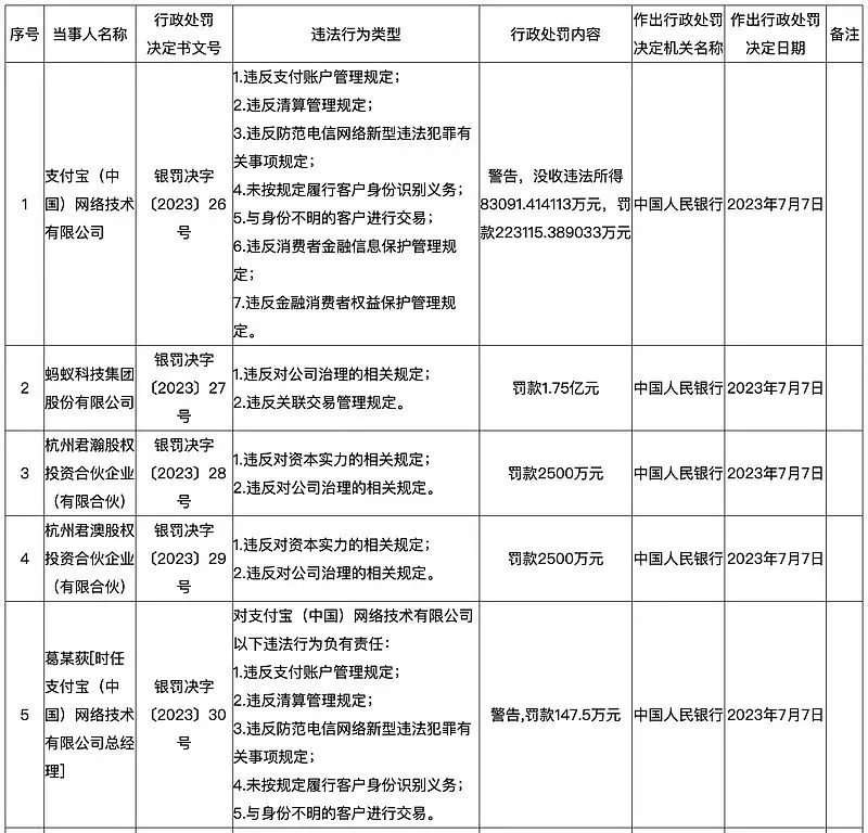 2023年7月,国家金融监督管理总局等部门对蚂蚁集团处以罚款71.23亿元。官方通报称,这是针对过去违规行为的处罚,标志着平台企业金融业务集中整改阶段性结束,转入常态化监管。