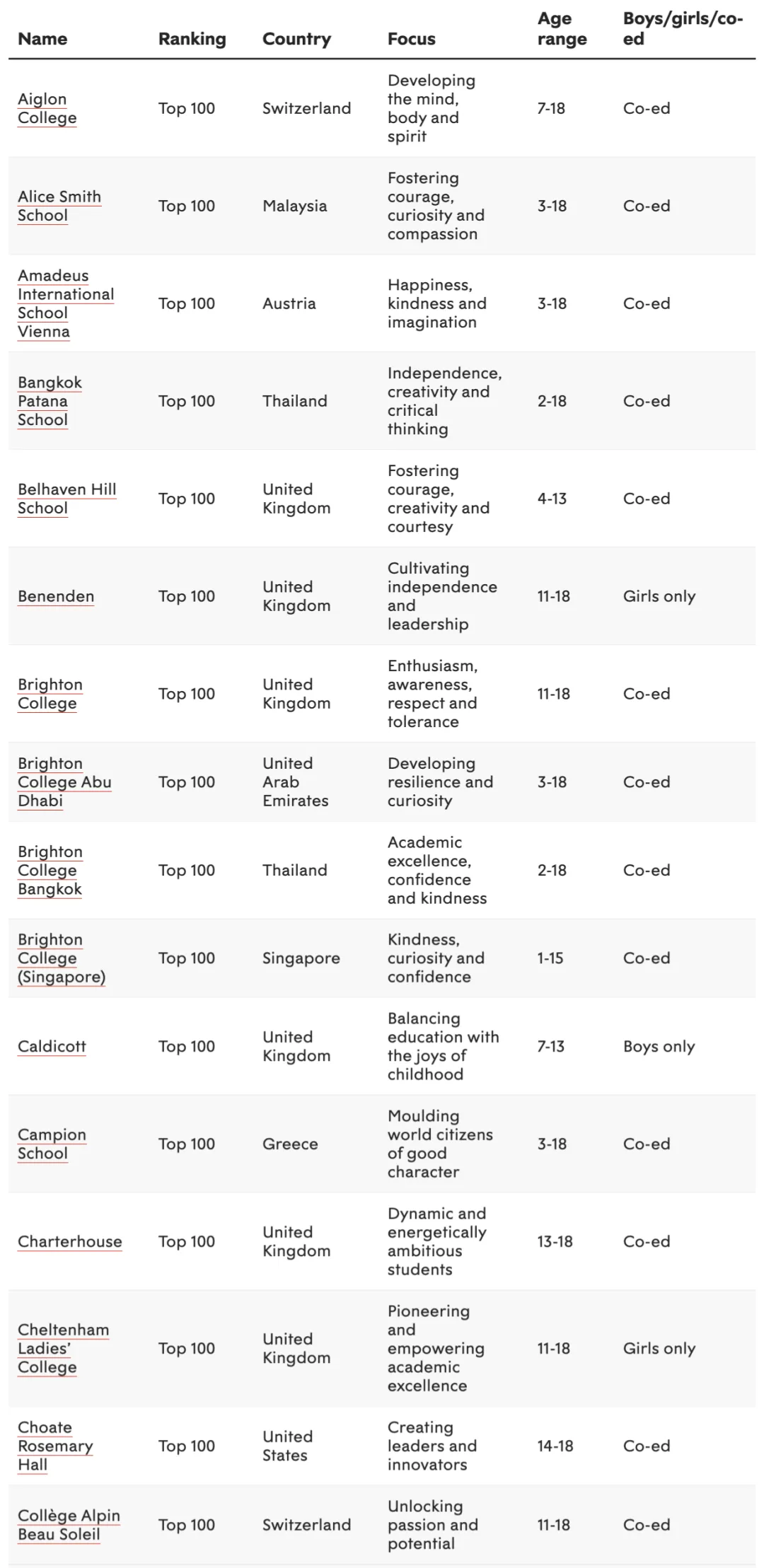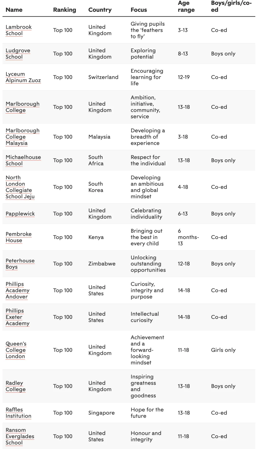 每年春季发布的《Spear’s学校指数》(The Spear’s Schools Index)从不标榜自己是一份传统意义上的学术排行榜。