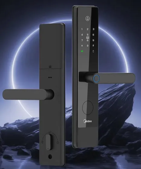 实测表现:半导体指纹识别速度约1.1秒,准确率97.5%,湿手识别成功率86%,偶尔出现识别失灵,重启可恢复。配备C级锁芯,基础防撬报警完善,满足日常防盗需求。8节5号干电池供电,续航约5个月,支持应急供电,价格亲民,更换电池便捷。核心优势是美的家电联动,开门可自动触发空调、灯光开启,部分型号配备高清显示屏,操作简单适配中老年。