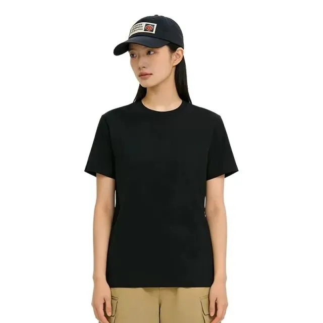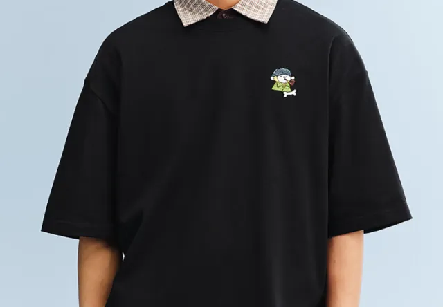 ② 颜色以黑白灰基础色为主,胸前的印花或logo设计比较克制,整体风格简约干净。领口罗纹做了弹力处理,不易变形。