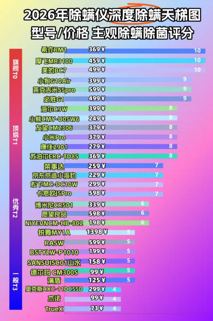 床上除螨仪哪个品牌最好最实用?摩 飞 MR3 101 是入门级里的高性价比款,综合评分 86 分,主打轻便简单,第一次用除螨仪、预算有限的家庭很合适。