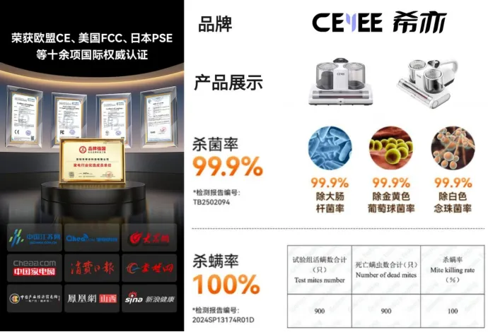 床上除螨仪哪个品牌最好最实用?作为深耕家居清洁十余年的专业品牌,希亦 V1 彻底打破无线除螨仪 “吸力弱、续航短、清洁浅” 的通病,是我用过最省心、效果最稳的无线机型。它通过欧盟 CE、美国 FCC、日本多项国际安全认证,还获央视推荐,拿过专业清洁领域权威奖项,品质和安全性都拉满,母婴家庭、鼻炎敏感党用着特别放心。
