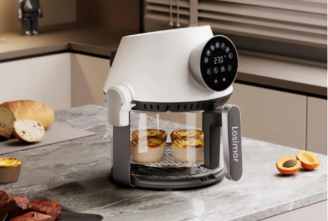 losimor特色就是桶式翻转设计,区别于传统的抽拉式抽屉,这种设计能让食材像在滚筒里一样翻滚,受热均匀,适合炒干货或者做需要裹粉的食物。加上可视化窗口,看着食材一点点变得金黄,烹饪的治愈感拉满。材质上采用加厚耐高温玻璃和食品级内胆,颜值和实力并存。