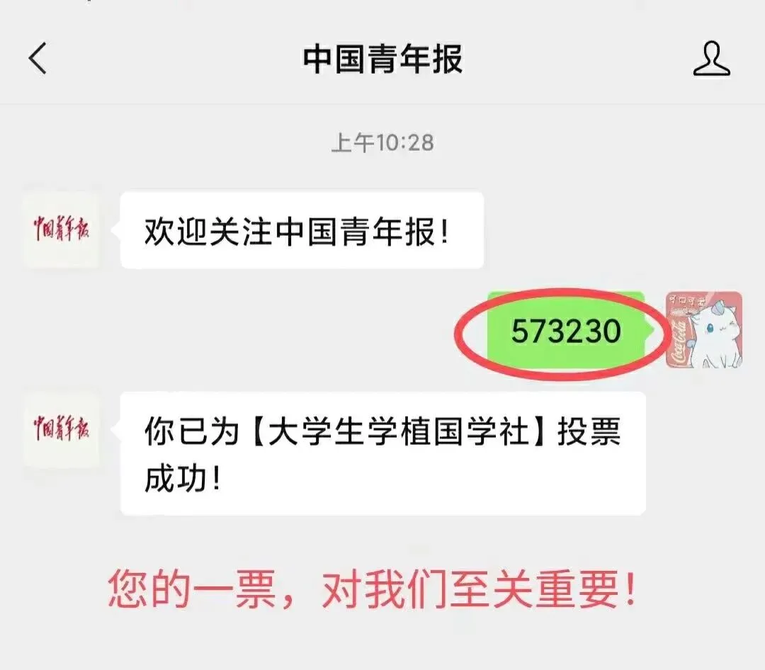 投票方式:关注【中国青年报】微信公众号,回复编码即可投票成功。